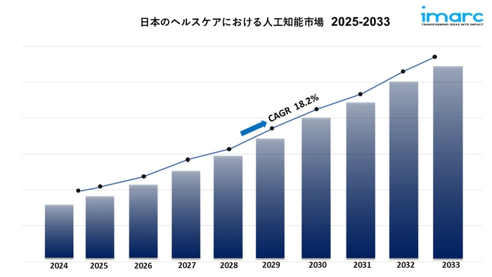 日本のヘルスケアにおける人工知能の市場規模は、2025年から2033年の間に年平均成長率(CAGR)18.2%で成長すると予測されています。