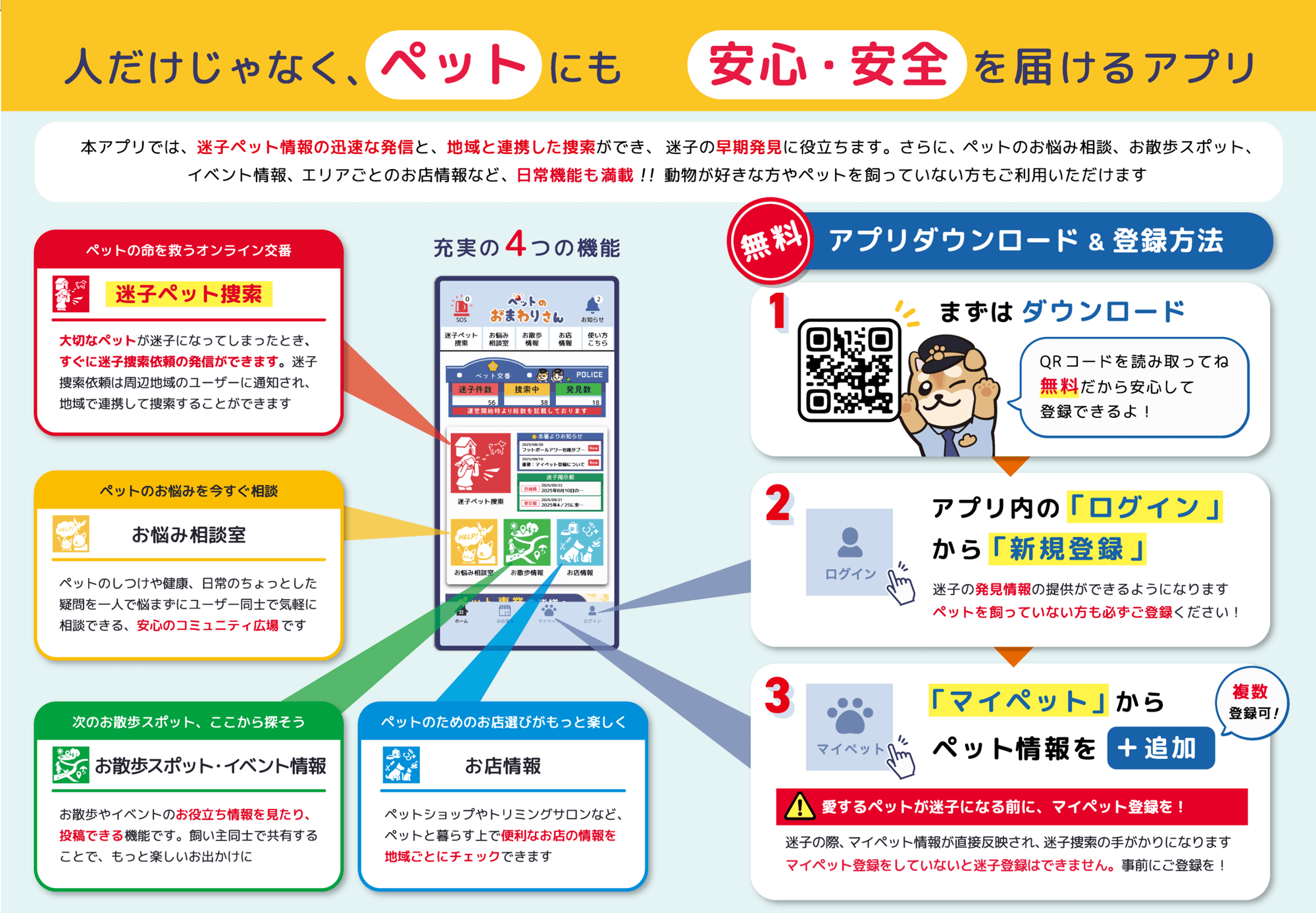 ▼地域連携型アプリ「ペットのおまわりさん」公式サイト
