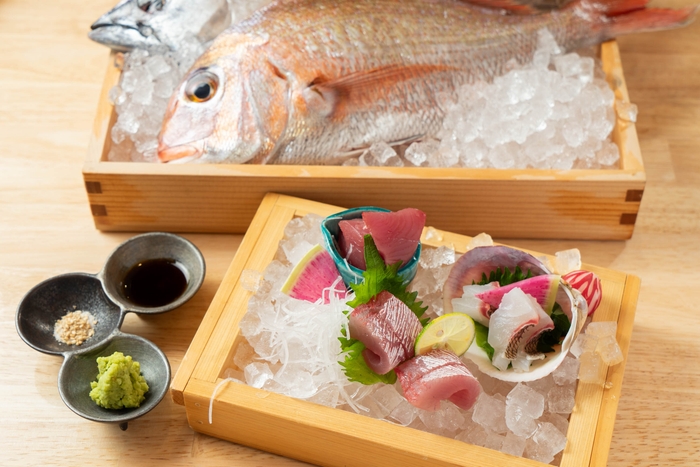 てんこち自慢の日替わりの鮮魚をはじめ、天ぷら、串揚げ、焼鳥にさまざまな一品料理と「大衆酒場」らしい数々のメニューをご用意いたしました。