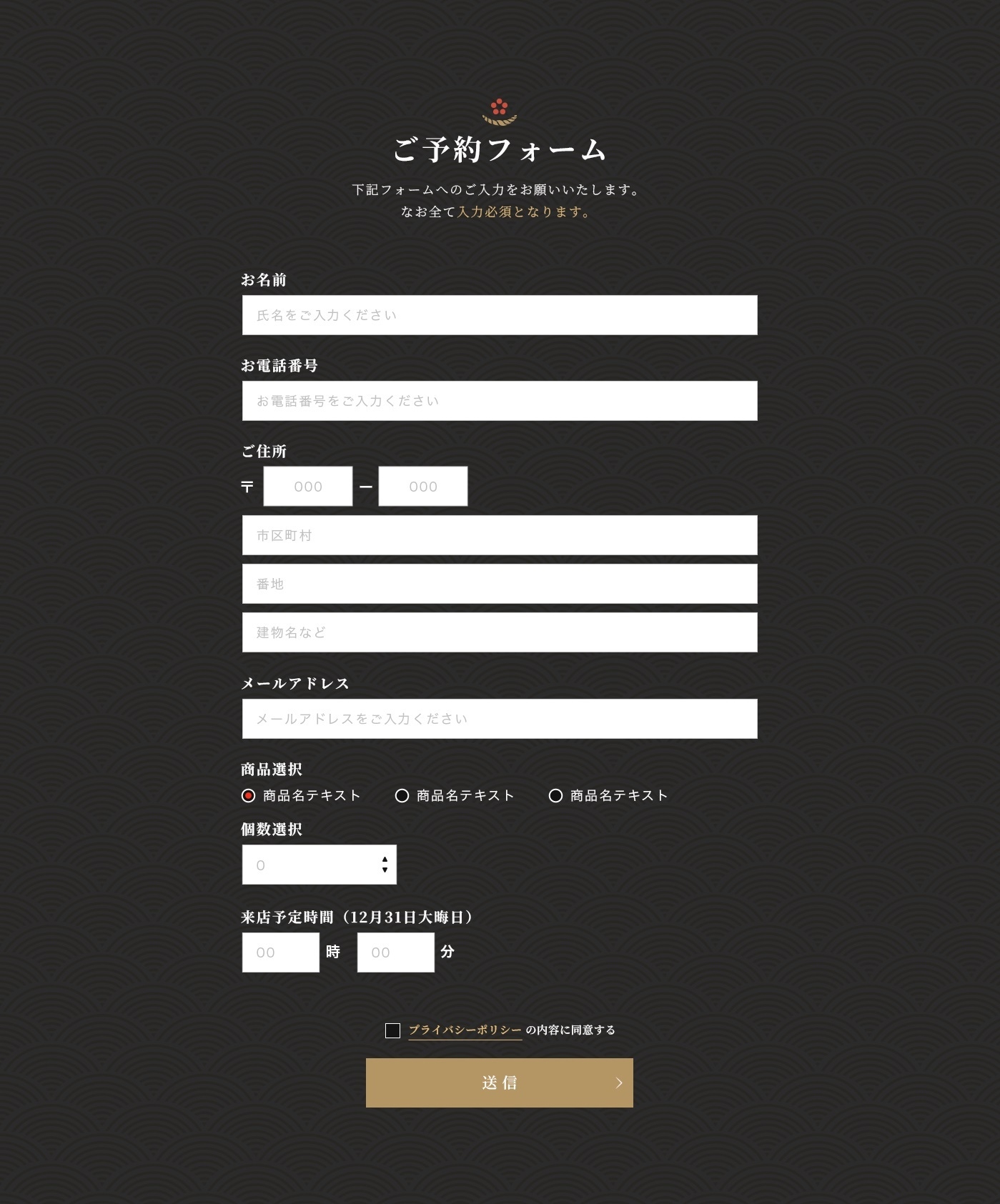 (2) そば店の個別ページより商品を選択します。お客様情報を入力し予約申し込みとなります。
