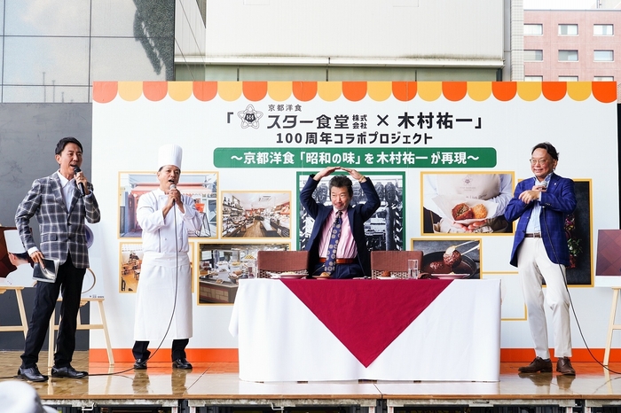 昔のカルボナーラを再現すべく綿密な打ち合わせや試食を繰り返し試行錯誤の末、昨年の10月、京都駅ビル駅前広場にて『「洋食惣菜 スター食堂 × 木村祐一」100周年コラボプロジェクト~京都洋食「昭和の味」を木村祐一が再現~』の発表会見があり、100周年コラボプロジェクトがスタートすることを発表しております。