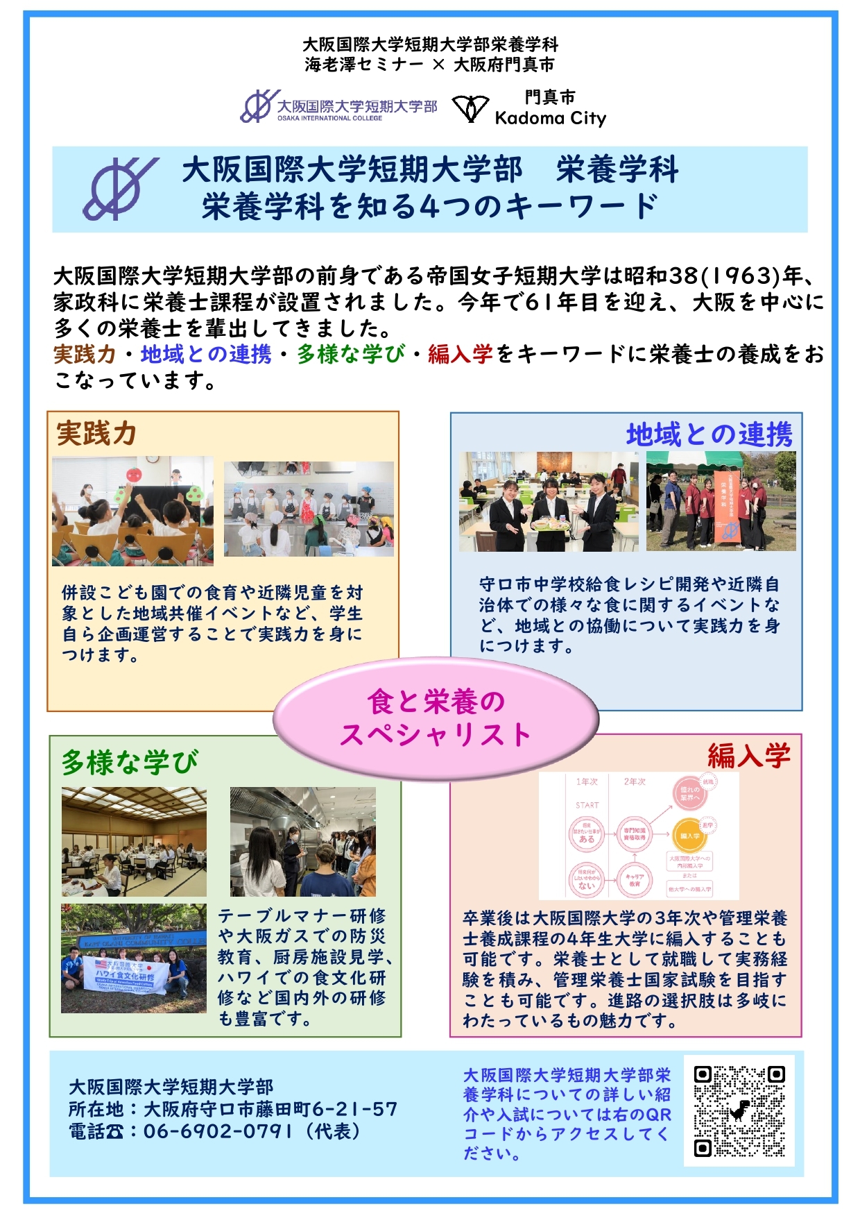 官学連携「”食”をとおした地域とのつながり」の発表 大阪国際大学短期大学部 栄養学科 海老澤セミナー