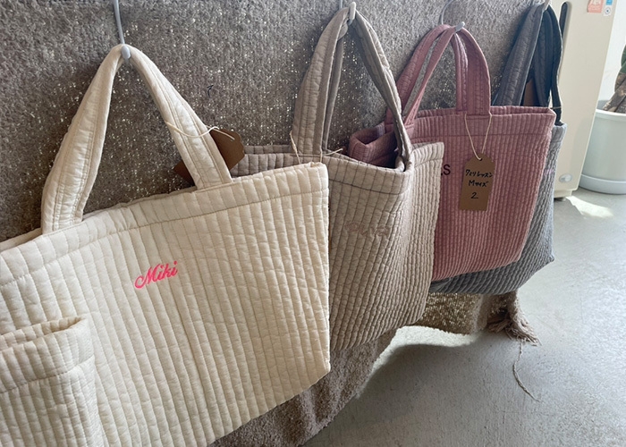 また、オンラインでの刺繍名入れサービスとは異なる、より自由度の高いサービスの提供によりオリジナルの刺繍やタッチを追加していただき、想い出のアイテムをぜひお持ち帰りいただきたいと考えています!その他、オンラインにはないサンプル品やアウトレットなども多数ご用意しております!