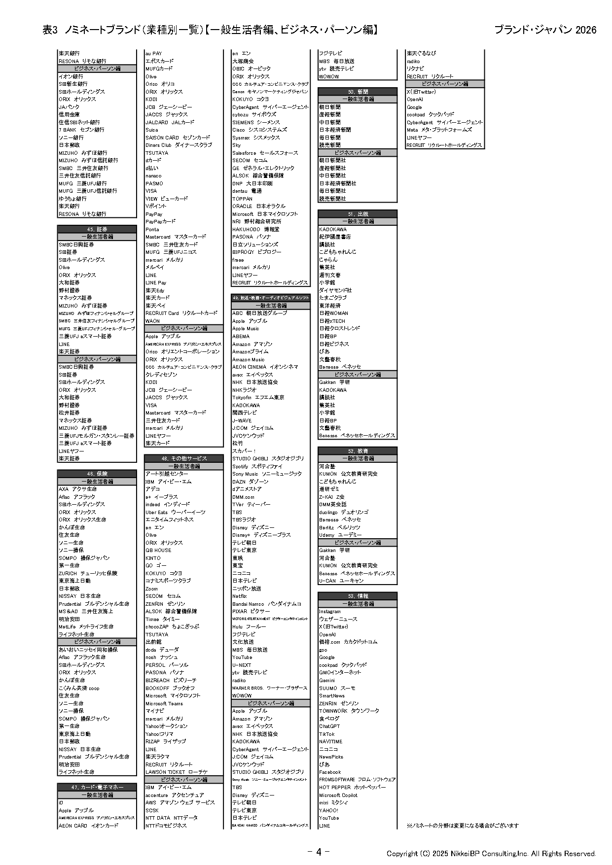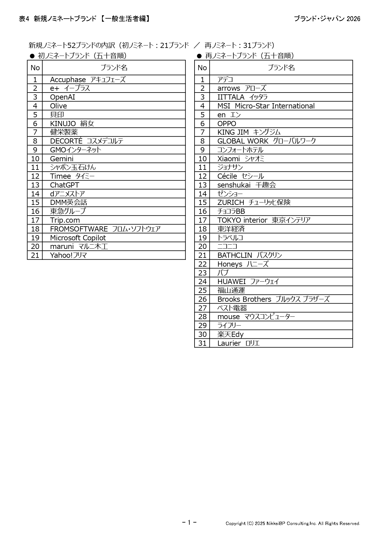 ※表4(別添):「ブランド・ジャパン 2026」新規ノミネートブランド【一般生活者編】