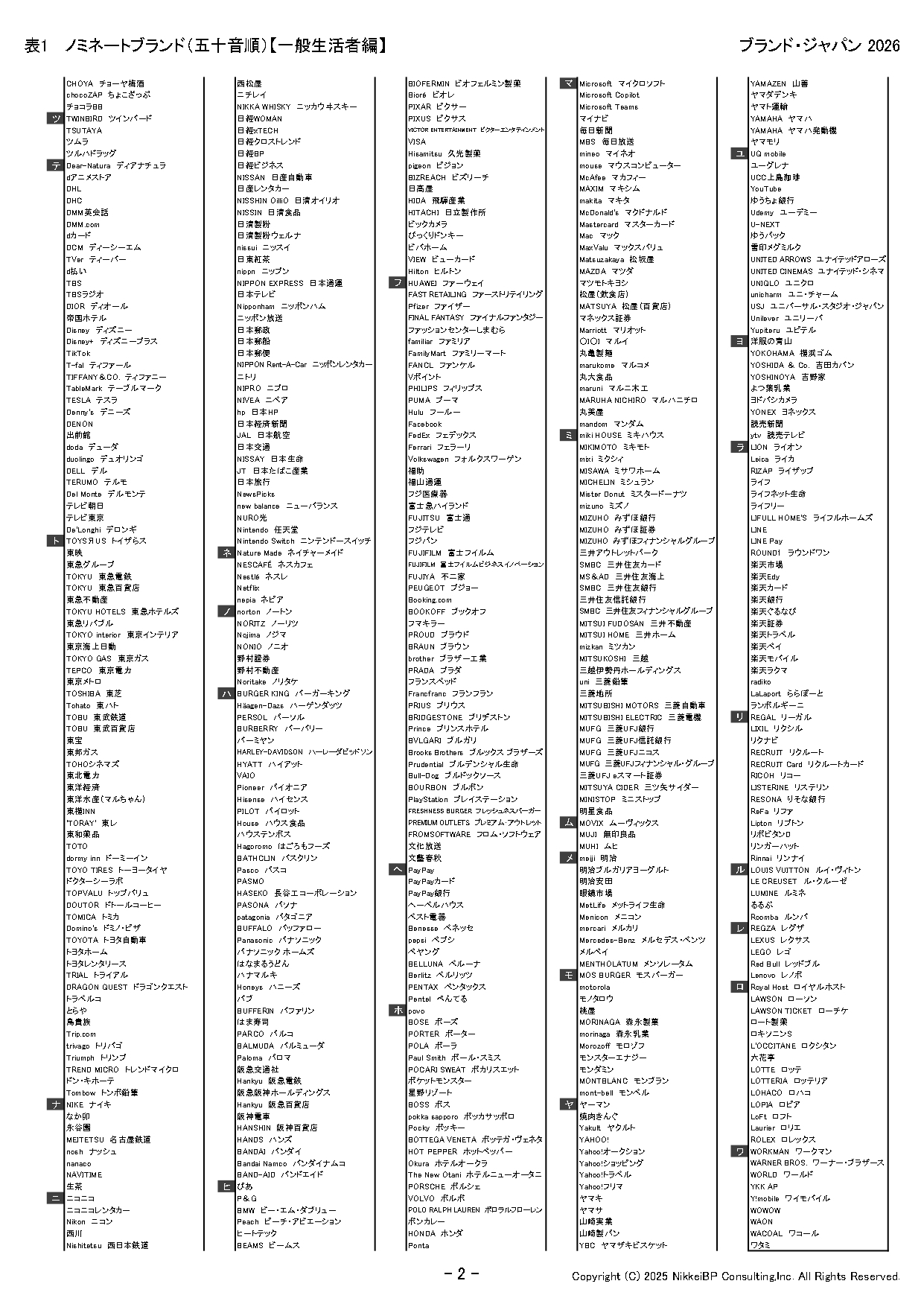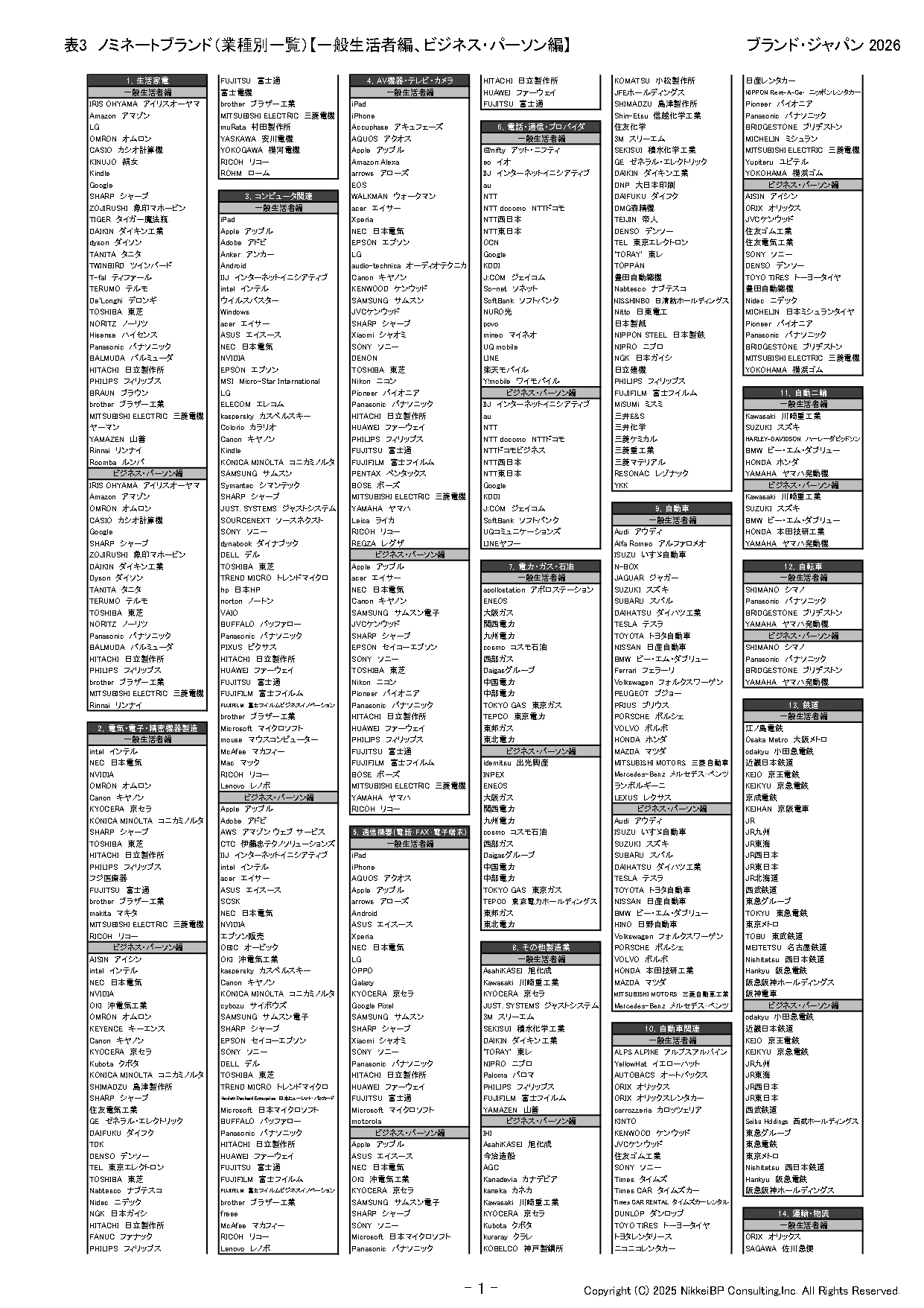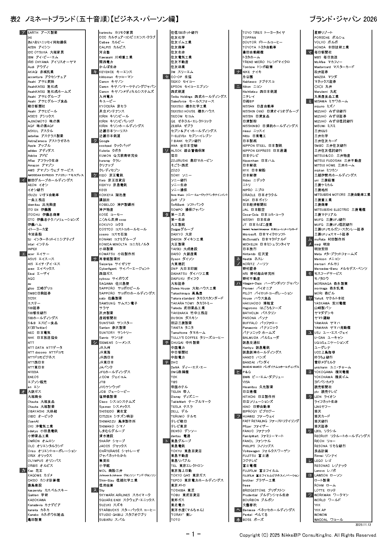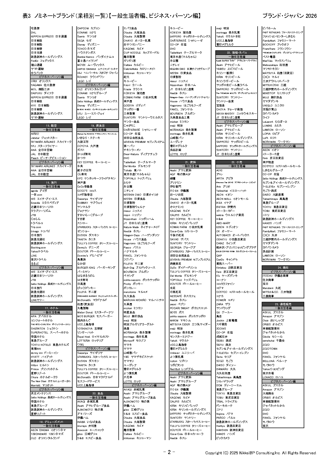 株式会社日経BPコンサルティング(東京都港区)は、2026年3月19日に発行予定の「ブランド・ジャパン2026」で調査対象となる1,500ブランド(一般生活者編1,000ブランド、ビジネス・パーソン編500ブランド)を発表した(表1~3)。