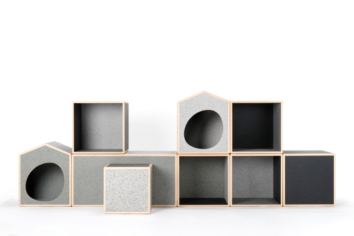 ・ファッションロス(衣類廃棄)をボードに美しく再資源化(デザイン+リサイクルでアップサイクル)した繊維廃棄物リサイクル素材「PANECO® board S」でつくった長く愛せるかわいい家具