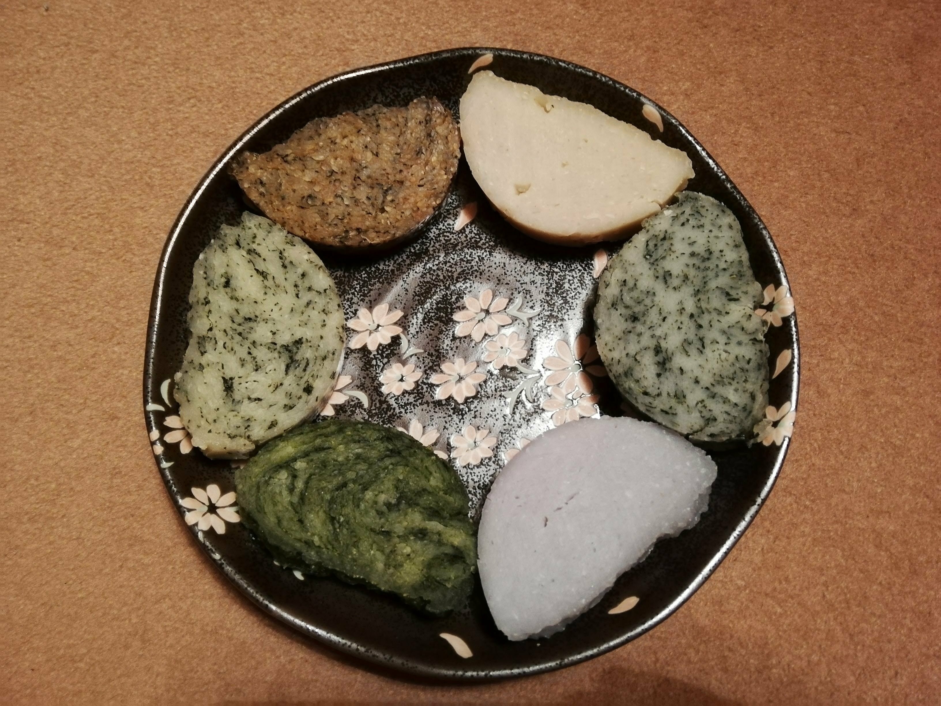 材料 :水稲もち米(国産)、緑茶、ほうじ茶、蝶豆茶、蘇芳茶