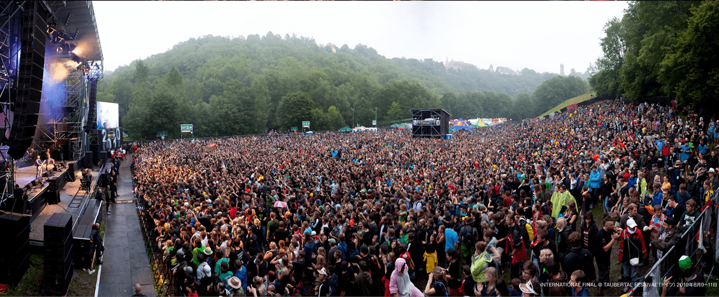 トーナメント方式で勝ち上がる形式で、審査員はオーディエンスの投票で決定し、予選⇒準決勝⇒決勝へと勝ち上がります。決勝戦のみプロの審査員が加わりますが、オーディエンスが勝者を決めるスタイルのイベントです。海外に直接つながる日本では数少ない音楽イベントです。日本大会決勝で勝ち残った1組が優勝となり、2023年8月に行われます、ドイツ・タウバタール野外フェスのドイツ国際決勝でライブをすることが出来ます。