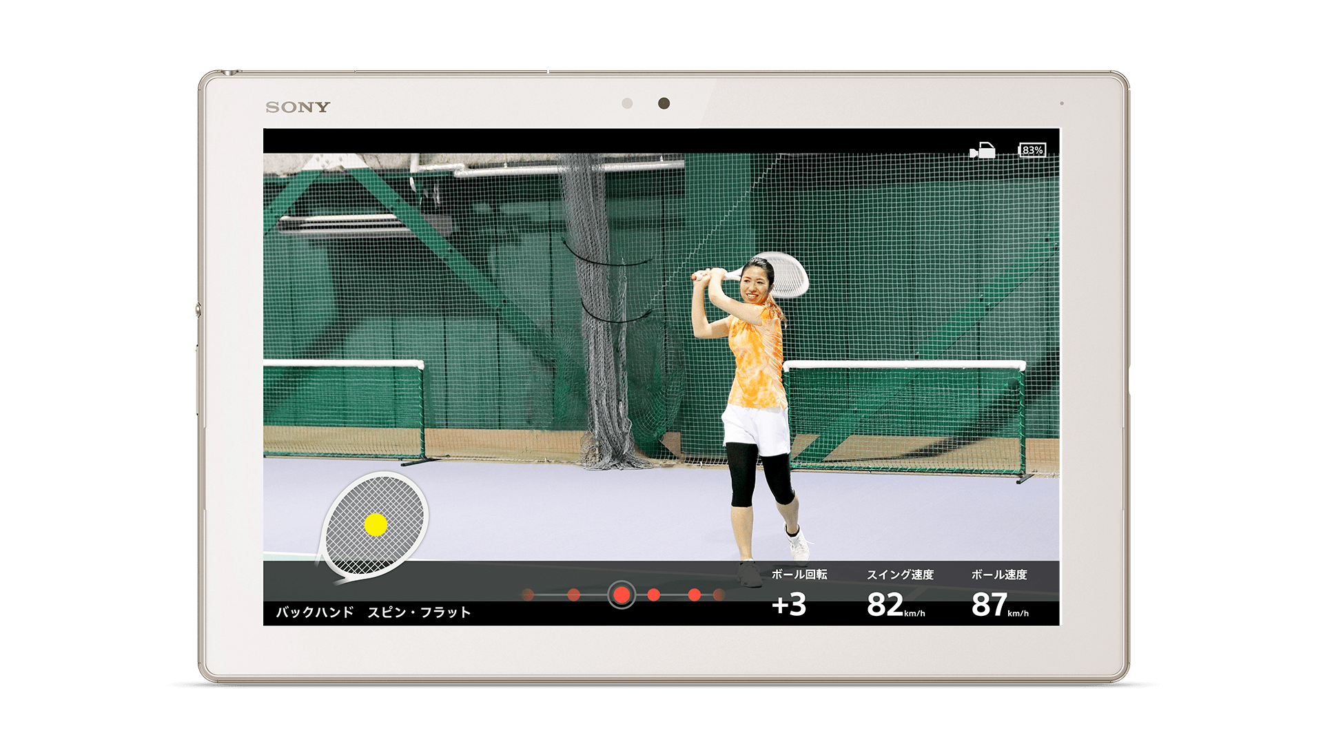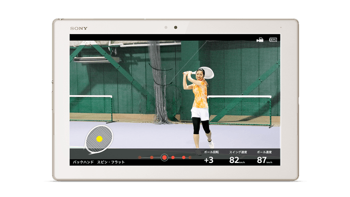 ソニーが開発したラケット装着型センサーSmart Tennis Sensor(スマートテニスセンサー)を使用し、ショットのデータを計測します。また、テニスコートにカメラを設置し、プレイヤーの動きを映像でも記録します。ショットのデータおよびプレイ映像は、コートサイドに設置した閲覧用のタブレットや、お手持ちのスマートフォンで確認することができます。
