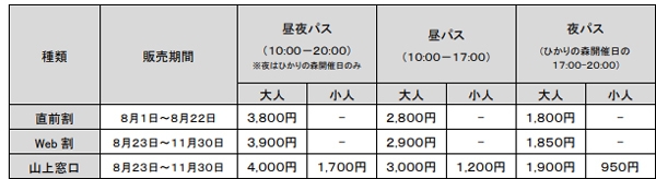 セット券も販売。(利用期間は8月23日(土)~11月24日(月・休)まで)
