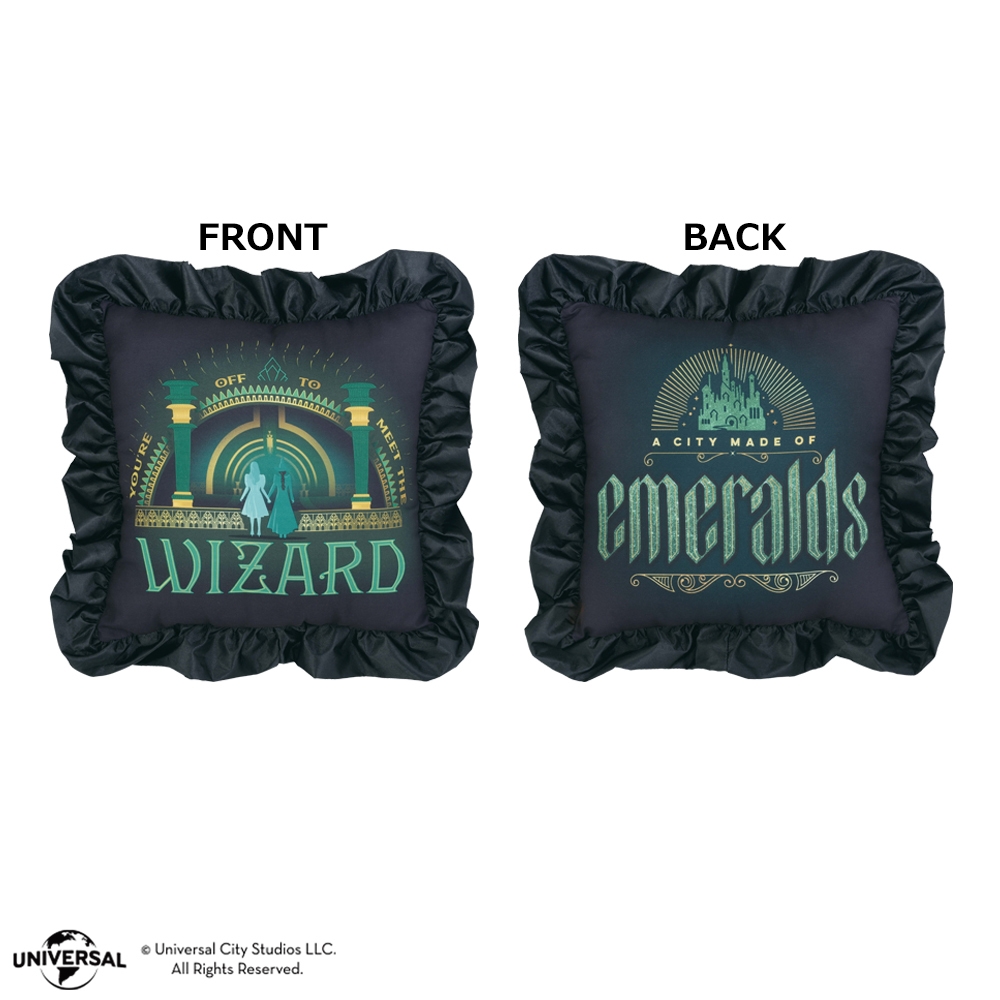 A賞は、シンシア・エリヴォ演じる《悪い魔女》エルファバの衣装を立体化したアクセサリーをかけられるトルソーフィギュアです。クリア素材を使用したマントと、漆黒のドレスの色合いにもご注目ください。B賞は、表面に手をつないで前を向いているエルファバとグリンダ、裏面に二人が目指す『エメラルドシティ』が描かれたクッションです。ボリューム感のあるフリルでウィキッドらしいデザインに仕立てました。C賞には、「W」の影が印象的なポスターアートを贅沢に使用したポスタオルをご用意しました。