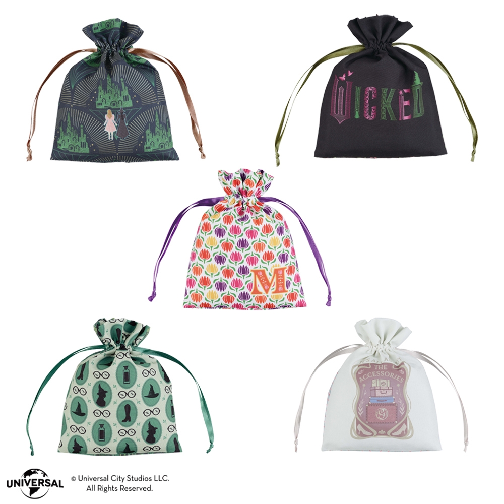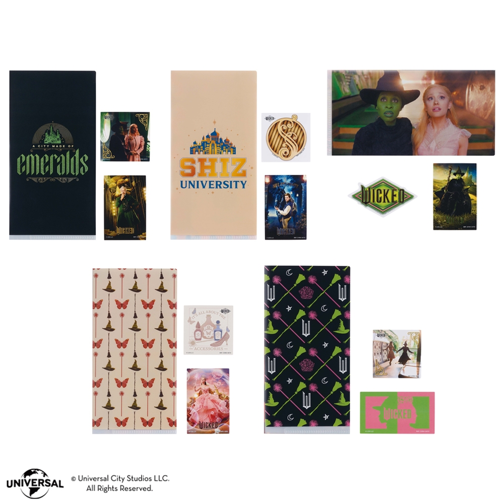 そのほか、二人のシルエットをプリントしたクリアカラーのゴブレット風グラス、『エメラルドシティ』柄・『ロゴ』柄・『マンチキンランド』柄・『エルファバ』柄・『グリンダ』柄の5種から選べる巾着ポーチ、作中アートをふんだんに使用したチケットホルダーとステッカーのステーショナリーセット、ウィキッドの印象的な『ロゴ』やグリンダ&エルファバモチーフ、シズ大学のエンブレム風など世界感満載のラバーコースターを取り揃えました。ぜひ映画とあわせてお楽しみください。
