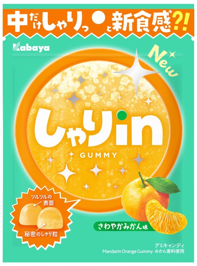 消費者からのご要望を受けて開発した※2『しゃりinグミ みかん』は、しゃりっとした食感とマッチする、さわやかな甘みのみかん味に仕上げました。