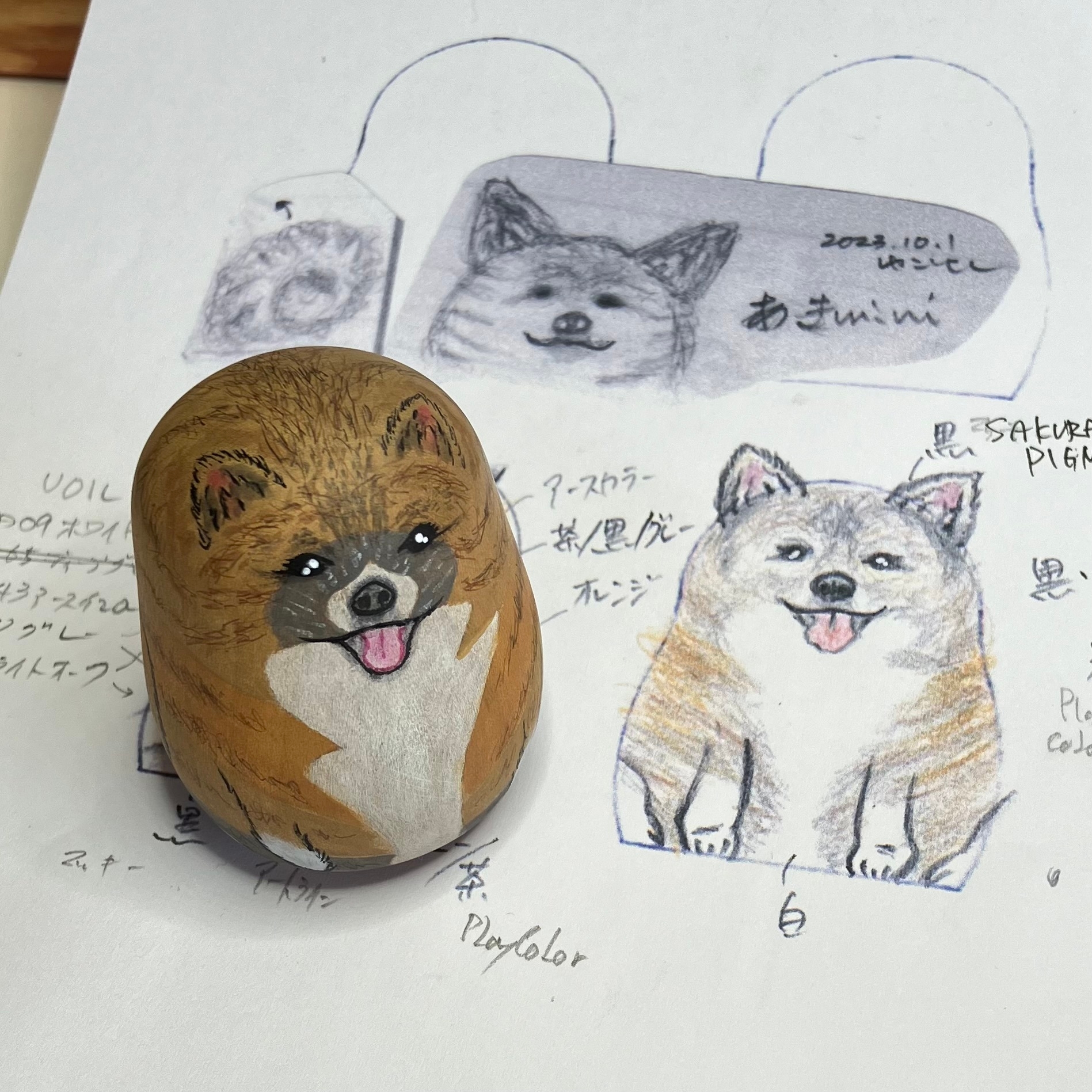 愛犬の写真と8つの特徴をもとに描いたデザイン図が出来るまで繰り返し確認をしてもらいます。