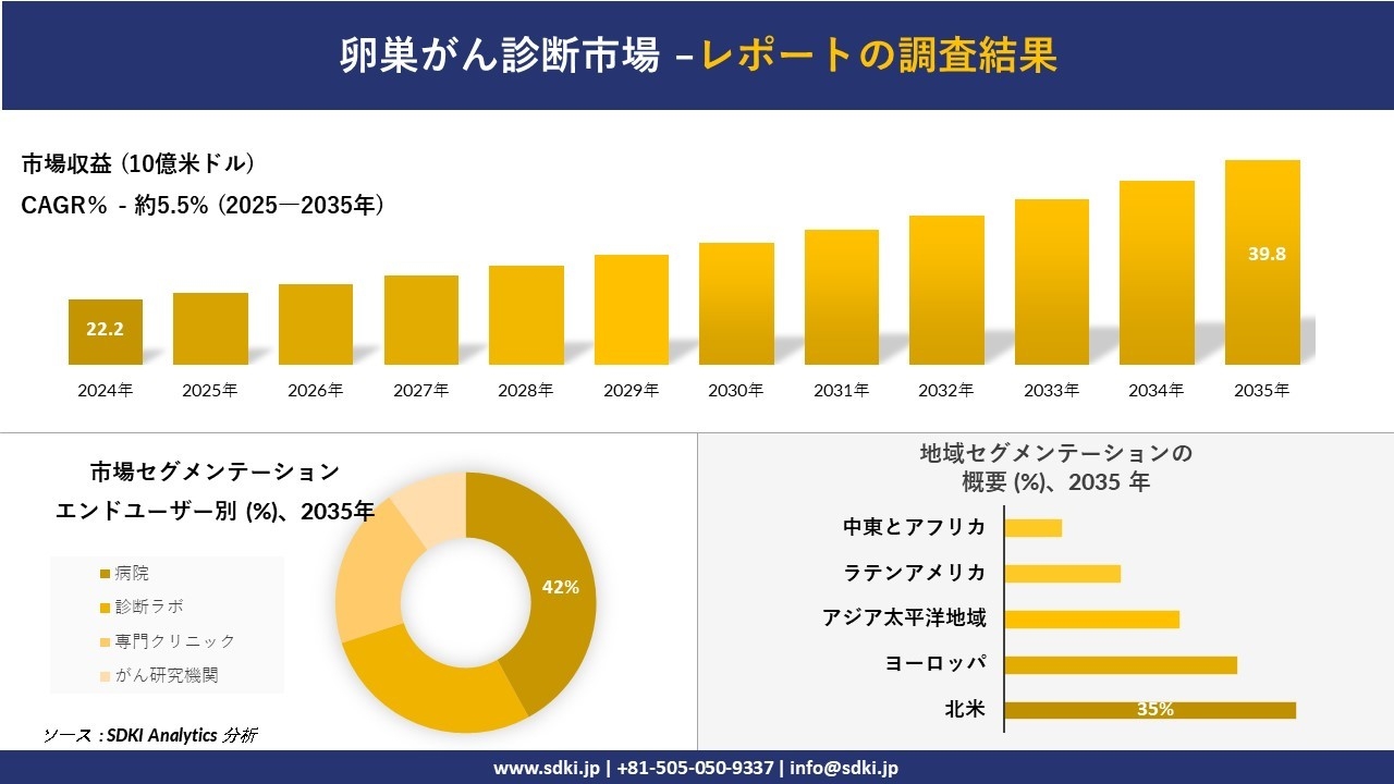 提出日 (2025年10月22)、SDKI Analytics(本社:渋谷区、東京都)は、2025年と2035年の予測期間を対象とした「卵巣がん診断市場」に関する調査を実施しました。