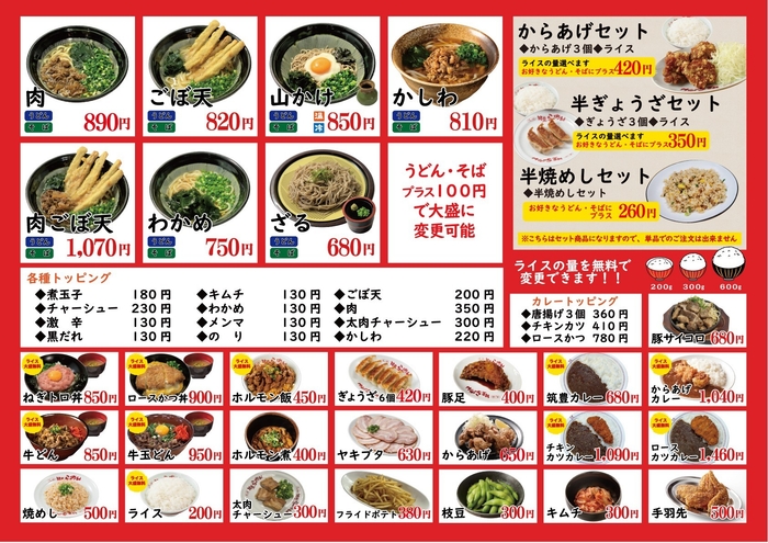 (麺類は全品販売予定ですが、状況により予告なく限定する場合があります。)