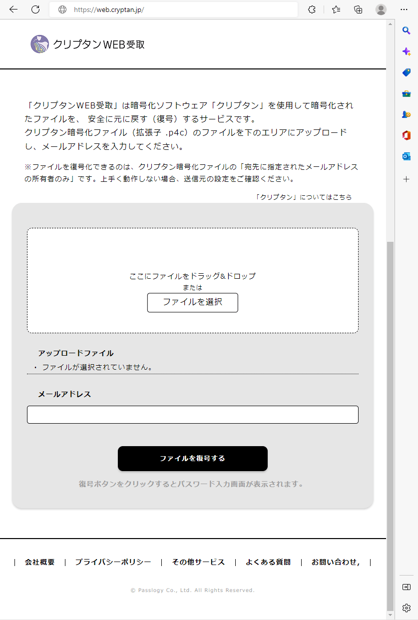 ※ クラウド上で暗号化ファイルを復号して受け取れる無料の専用ウェブサイト「クリプタンWEB受取」を用意。