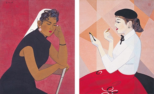 - 芸妓の夕化粧を巧みな筆でとらえ、昭和初期の情緒漂う《暮方》から、戦後のセーラ服姿の爽やかな女学生《清秋》、ファッショナブルな女性を生き生きとした色彩で表現した現代感覚あふれる《赤と白A・B》なども展示。文化風俗史の観点からも必見。
