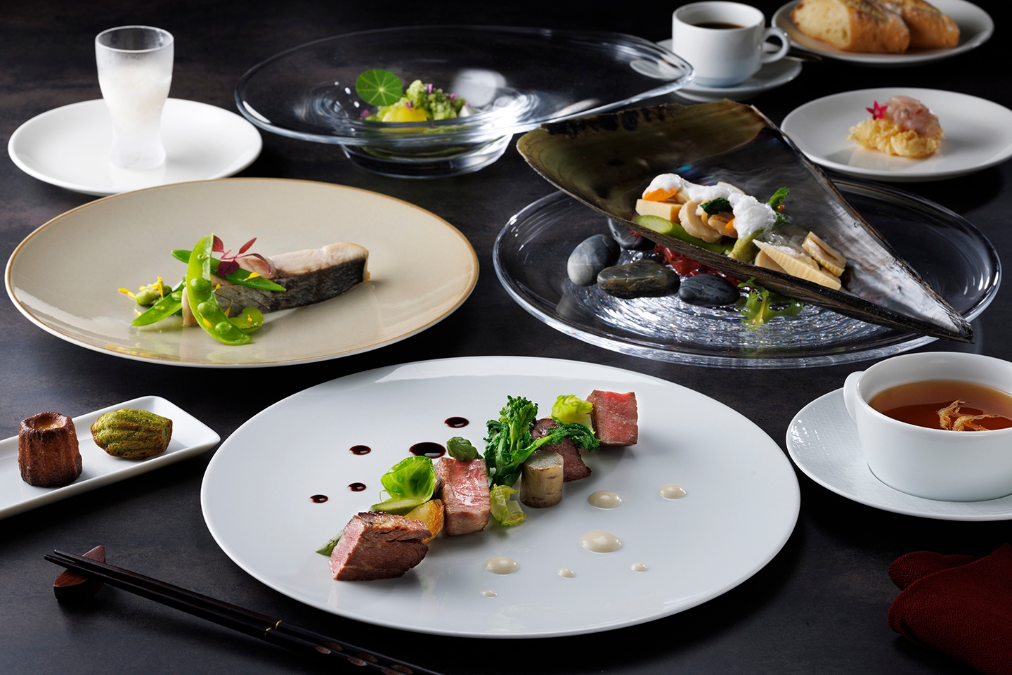 地元にゆかりのある食材を取り入れ、オープン当初の和食があったというリスペクトの気持ちを込め、お箸でも召し上がれるディナーコースの提供。100年の間で培った地元生産者との繋がりを活かし、地場産食材の魅力をより多くの方々に知ってもらいたいという思いから誕生し、和食の要素も取り入れたフレンチを提供いたします。