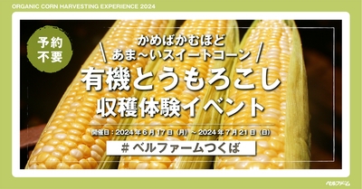 【ベルファームつくば】ベルファームの有機農場でスイートコーンを収穫しよう!! 黄粒と白粒のバイカラーが美しい有機とうもろこし収穫体験イベント2024|期間:2024年6月17日(月)~2024年7月21日(日)