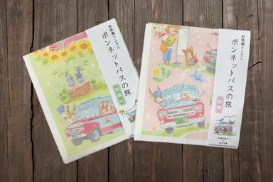~鹿作家めぐ×丸山繊維産業×奈良交通~ 蚊帳織りふきん「ボンネットバスの旅」発売