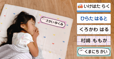 保育園の入園準備に人気の「昼寝布団用お名前シール」に、かわいい新デザイン12種が仲間入り。