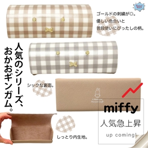 シンプルだけど可愛い♪ミッフィーおかおギンガムシリーズのメガネケースはゴールド刺繍もポイント