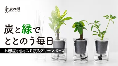 土の代わりに炭で育つ新感覚グリーン「炭の樹」 6月16日から先行発売!手間が少ない独自の給水構造
