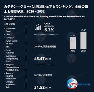 世界のカテチン市場:2032年に6.3%成長率、市場規模は45.47百万米ドルに達する見込み