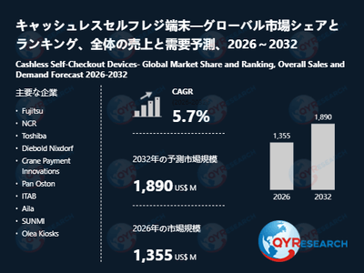 世界のキャッシュレスセルフレジ端末市場:2032年に5.7%成長率、市場規模は1890百万米ドルに達する見込み