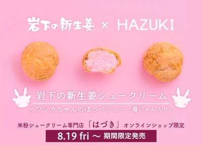 イワシカちゃんのほっぺをイメージしたピンクのミニシュー♪『岩下の新生姜シュークリーム』が米粉シュークリーム専門店「はづき」オンラインショップで8月19日から期間限定発売。