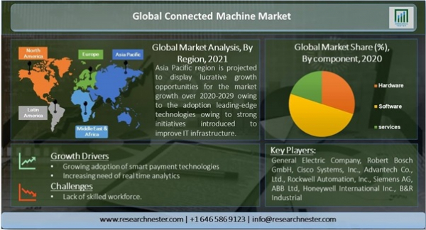 コネクテッドマシン市場―コンポーネント別および業界別(自動車、航空、石油およびガス、輸送、発電およびユーティリティ、製造、ヘルスケア、小売、その他)-世界の需要分析と機会の見通し2021-2029年