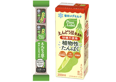 プラントベースフードシリーズより、新フレーバーが登場「Plant Label えんどう豆由来のおつまみ ガーリック味」「Plant Labelえんどう豆生まれ 砂糖不使用」