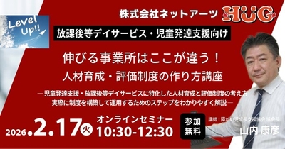 【放デイ向け】施設運営システム「HUG」提供のネットアーツが2月17日(火)【児童発達支援・放課後等デイサービス事業者様向け】「人材育成・評価制度の作り方」セミナー開催