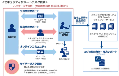 中堅中小企業向けに、最大3,000万円の費用を補償する サイバーリスク保険が付いた 「セキュリティサポートデスク」の提供を開始