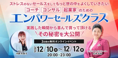 売上10倍、成約率100%を実現した起業家たちのノウハウを大公開 3日間限定「エンパワーセールス(R)クラス」12月10日~12日開催