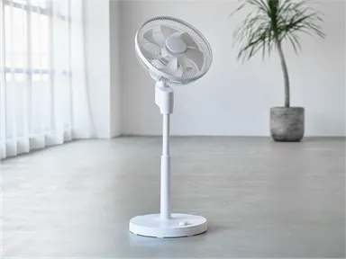 真上まで角度調整できるので換気や部屋干しにも便利! 「ダイヤル式風量調整DCリビング扇風機」を発売