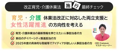 人事・労務向けセミナー『改正育児・介護休業法施行 最終チェック!改正に対応した両立支援と 女性活躍推進の方向性を考える』を4月22日(火)に開催!