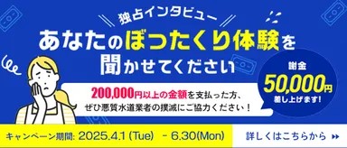 <協力金5万円>水道修理のセーフリーが ぼったくり被害者の声を集めます