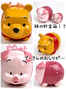 豚の貯金箱ならぬ、ピグレットの貯金箱。たしかにピグレットは豚だけど…と思ったらプーさんの背中がカワイイまんまるフォルムの貯金箱もありました!しかも2サイズ。貯蓄貯蓄!