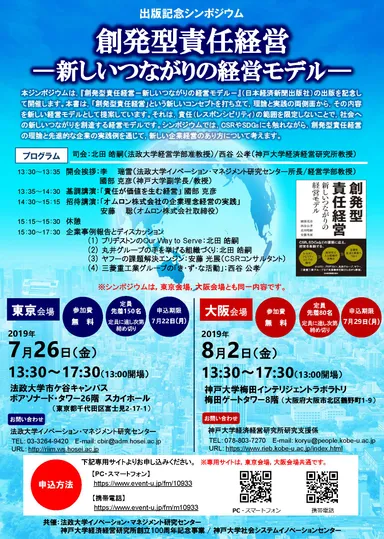 法政大学イノベーション・マネジメント研究センター シンポジウム 「創発型責任経営―新しいつながりの経営モデル―」 2019年7月26日(金)に市ケ谷キャンパスにて開催!