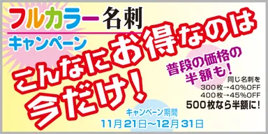 名刺印刷、最大半額(50%)値引きの破格値キャンペーン実施! 年末に向けて海外印刷工場協賛のもと特別価格を実現