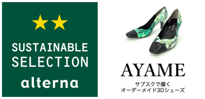 オーダーメイド3Dシューズ『AYAME』がalterna主催の『サステナブル★セレクション』2022にて、2つ星を受賞
