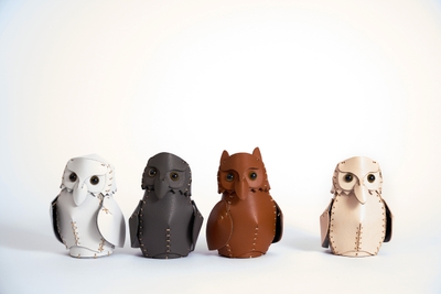 組み立てる縁起物「ふくろうとみみずく」レザークラフト革模型キット、新色発売