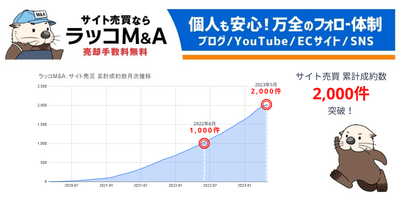 【ラッコM&A】サイト売買:累計案件成約数2,000件突破!