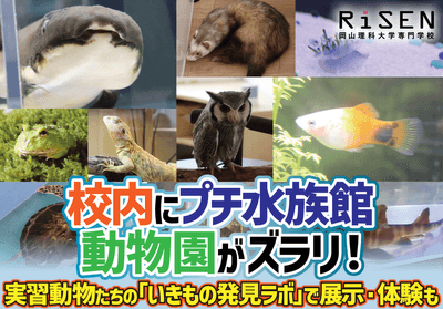 【岡山理科大学専門学校】校内にプチ水族館・動物園がズラリ!実習動物たちの「いきもの発見ラボ」で展示・体験も