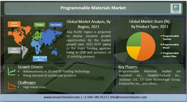 プログラマブル材料市場ー製品タイプ別(プログラム可能なテキスタイル、プログラム可能な木材、プログラム可能な炭素繊維);およびエンドユーザー別-世界の需要分析と機会の見通し2021-2029年