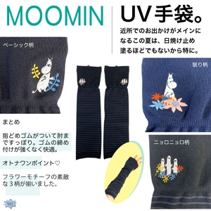 ムーミンの日焼け防止UV手袋!ムーミンが日焼けからあなたを守ります。大人も使いやすいワンポイント刺繍でヒジまでスッポリ♪
