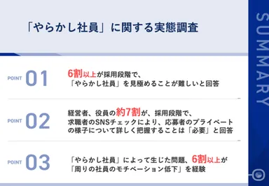 「上司の指示を聞かない」「失敗を隠す」など、 ほとんどの企業に存在する「やらかし社員」... 経営層の6割以上が採用段階で、 「やらかし社員」を見極めることが難しいと吐露