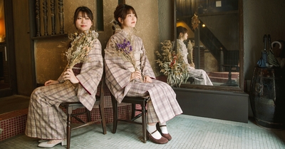 バレンタインの京都観光に。かわいらしく上品な新作重ね衿がレースコーデ着物、振袖プランにて2月1日よりレンタル開始。